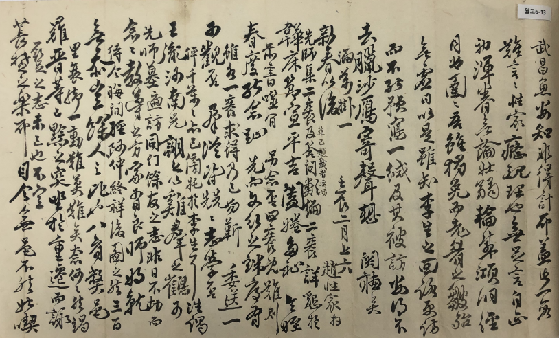 | 653 | ▼a간찰▼a월고문고▼a月皐6-13▲ | ||